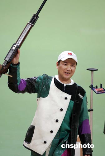 當地時間八月二十二日下午,在雅典奧運會男子三乘四十射擊比賽中,中國的賈占波以一千二百六十四點五環的成績獲得金牌。中新社記者:毛建軍