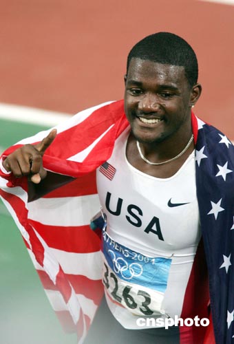 加特林獲得雅典奧運(yùn)百米飛人大戰(zhàn)冠軍