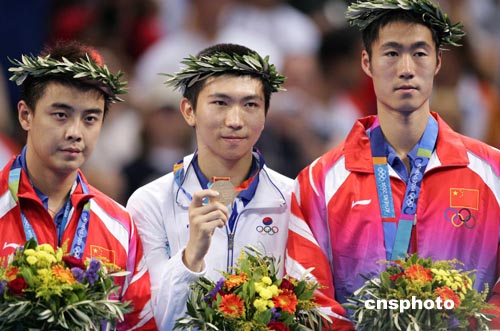 王皓與王勵(lì)勤分獲奧運(yùn)男單銀牌與銅牌