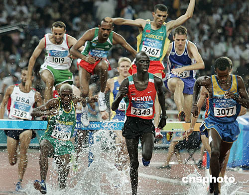 圖為在男子3000米障礙賽中,選手們的精彩表現。