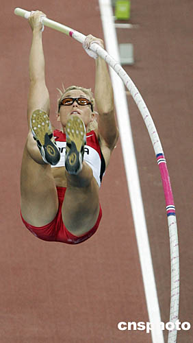 圖為加拿大選手DANA ELLIS在女子撐高跳比賽中的畫面。
