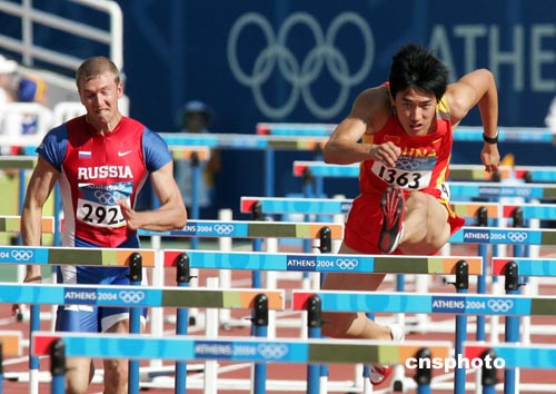 劉翔在賽前就已成為外界關注的焦點,電視鏡頭一直聚焦在劉翔和他的首要對手、美國老將阿蘭·約翰遜身上。劉翔在第三組出場,他起跑反應迅速,一直處于領先位置,第一個沖過終點線,十三秒二七的成績令他在所有四十八名選手中名列第三。
