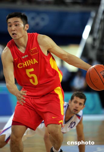 中國男籃在雅典奧運會小組賽最后一場比賽中以一分險勝世界冠軍塞黑隊闖入前八名,組織后衛劉煒表現尚可,但是要想成為世界級的組織后衛并闖蕩NBA,仍需多多努力。中新社記者:任晨鳴