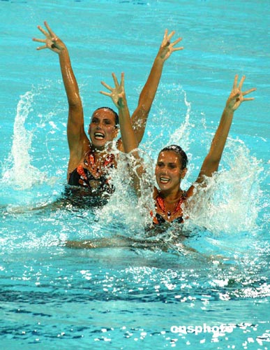 當地時間8月24日晚,巴西隊在雅典奧運會進行雙人花樣游泳比賽。中新社記者:王瑤