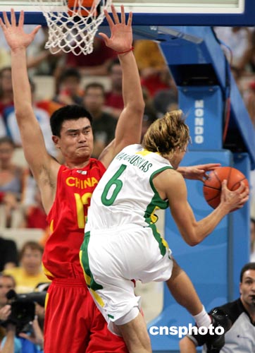 中新網(wǎng)8月26日電 在剛剛結(jié)束的雅典奧運(yùn)會(huì)男子籃球的一場(chǎng)四分之一決賽中,由NBA球星姚明率領(lǐng)、但實(shí)力不濟(jì)的中國(guó)隊(duì),最終以75:95的比分負(fù)于奪標(biāo)大熱門(mén)立陶宛隊(duì)。