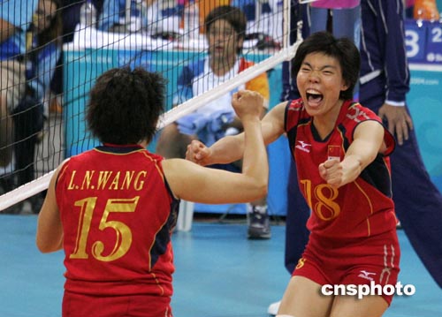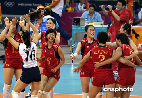 中新社雅典八月二十七日電 (記者 宋方燦)奧運(yùn)會(huì)女排半決賽今天凌晨結(jié)束,中國(guó)女排在與古巴隊(duì)的比賽中苦戰(zhàn)五局,以三比二戰(zhàn)勝對(duì)手,晉級(jí)決賽。五局的比分為二十五比二十二,二十五比二十,十七比二十五,二十三比二十五和十五比十。