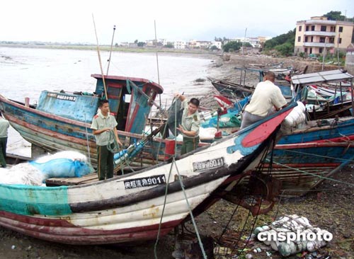 今年第18號(hào)臺(tái)風(fēng)“艾利”8月25日下午16:30在福建省福清市高山鎮(zhèn)登陸后,正在一線抗臺(tái)風(fēng)的福清邊防官兵迅速轉(zhuǎn)入緊急救災(zāi),為群眾挽回經(jīng)濟(jì)損失200多萬(wàn)元人民幣,確保了省委省政府提出的不死人、少損失的要求,受到當(dāng)局和群眾的一致好評(píng)。圖為橋尾邊防派出所官兵協(xié)助當(dāng)?shù)厝罕娂庸虧O船。作者:朱明海