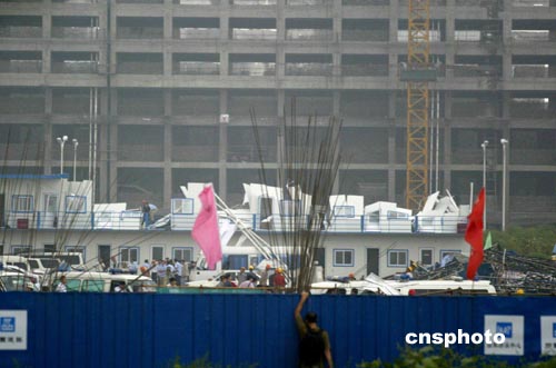 圖為中國國家游泳中心工地被局地旋風摧毀的臨時設施。