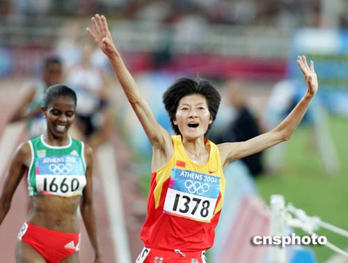 然而中國人興奮的情緒還沒有冷卻,又一匹“東方神鹿”再現(xiàn)雅典——刑慧娜勇奪女子萬米金牌,她在沖刺階段依然保持了良好的體力和狀態(tài),并在最后一個直道甩開此前一直領先的埃塞俄比亞選手率先沖線。