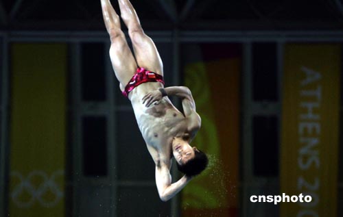 當地時間8月28日晚,在雅典奧運會跳水最后一項比賽--10米跳臺決賽中,奪標呼聲最高的“跳水王子”田亮意外失手,僅僅獲得第三名。中新社記者:任晨鳴