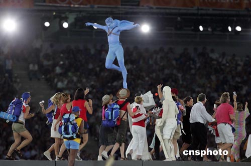 當(dāng)?shù)貢r間八月二十九日,第二十八屆奧林匹克運動會在雅典圓滿結(jié)束。圖為閉幕式上的文藝表演。中新社記者:毛建軍