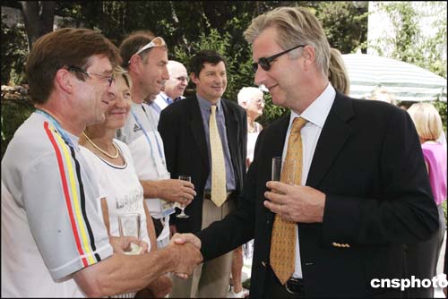 當地時間29日,比利時菲利普王子和王妃瑪蒂爾德在駐希臘大使館會見了運動員。