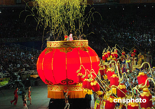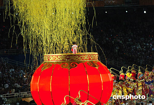 在當地時間8月29日舉行的奧運會閉幕式上,一中國小女孩在緩緩升起的大紅燈籠上演唱《茉莉花》。