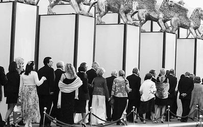 不知道從什么時(shí)候開(kāi)始,歐洲電影節(jié)和罷工游行就像孿生兄弟一樣,形影不離。本屆威尼斯電影節(jié)也不能幸免。傍晚時(shí)分,在參展演員和導(dǎo)演下榻的威斯汀酒店外,一群統(tǒng)一著裝的人組成方隊(duì)圍在門(mén)口,他們每個(gè)人身上都掛著大紙牌,紙牌背面寫(xiě)著:“威娜”危害身體健康,請(qǐng)禁止其生產(chǎn)。原來(lái)本屆電影節(jié)最大的贊助商之一就是世界知名美發(fā)廠(chǎng)商“威娜”。電影節(jié)開(kāi)幕式開(kāi)始,明星們走上紅地毯時(shí),還不斷有游行隊(duì)伍在周?chē)已玻贿^(guò),盡管是游行,他們的態(tài)度卻很平和,沉默寡言,絲毫沒(méi)有影響電影節(jié)開(kāi)幕式的進(jìn)行。
