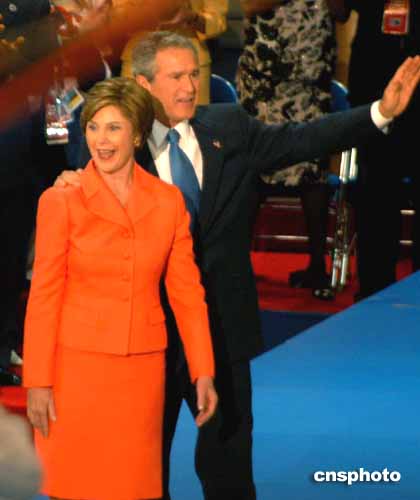 另據美國《基督教科學箴言報》報道,演講結束后,布什及夫人勞拉還一起在臺上向與會的支持者們揮手致意,非常注意淡化布什在選民心目中的強硬的、保守的印象。
