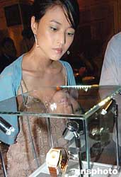 瑞士名表MILUS九月三日在香港舉行發(fā)布會(huì),展示其價(jià)值高達(dá)99萬(wàn)的TARASEA鉆石腕表。圖為影星、著名設(shè)計(jì)師等出席揭幕儀式。作者:錢興強(qiáng)