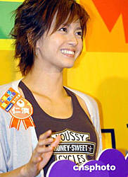 香港影視紅星梁詠琪,9月4日出席在香港沙田新城市廣場舉行的“仁濟愛心色彩大行動”。作者:洪少葵