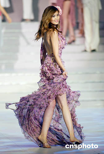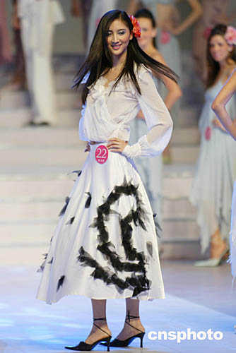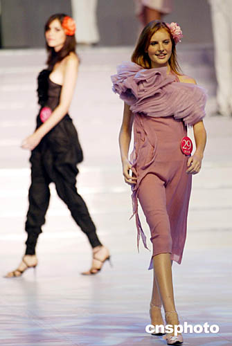 9月5日晚,“時(shí)尚杭州之旅·2004年新絲路世界模特大賽”在浙江省人民大會(huì)堂舉行,來(lái)自二十八個(gè)國(guó)家的四十七名選手將參加小禮服、泳裝、晚裝展示、情景劇表演以及系列專業(yè)技能展示的比賽。中新社記者:盛佳鵬