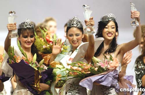 9月5日晚,“時尚杭州之旅·2004年新絲路世界模特大賽”在浙江省人民大會堂舉行,來自二十八個國家的四十七名選手經(jīng)過禮服、泳裝、晚裝展示、情景劇表演以及系列專業(yè)技能展示的比賽,大賽桂冠最終被中國選手李子寧(中)奪走,烏克蘭選手左娜·高維科(左)和韓國選手Kwon Hyun Ji分列二三名。中新社記者:盛佳鵬