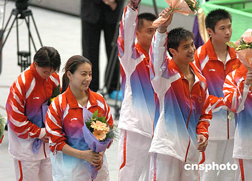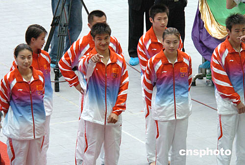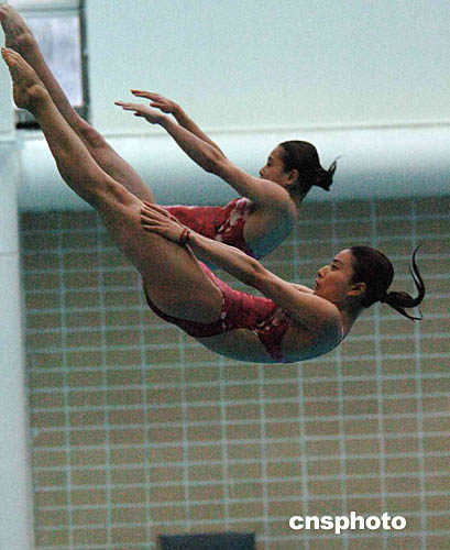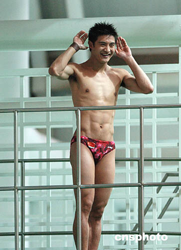 國家奧運金牌選手8日下午在九龍公園跳水示范表演。作者:洪少葵