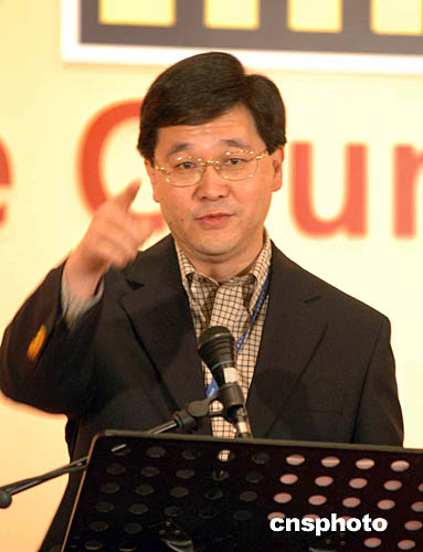 香港9月12日舉行2004年立法會(huì)選舉投票日,香港政制事務(wù)局局長(zhǎng)林瑞麟中午親臨新聞中心率先簡(jiǎn)報(bào)選舉投票率。作者:洪少葵