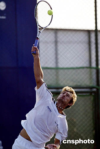 九月十二日,網球超級巨星費雷羅在北京網球中心的外場進行訓練,為即將開始的中國網球公開賽正選賽作準備。