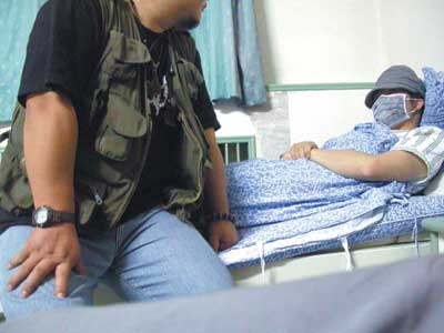 昨天,記者下午冒雨來到易茗正在治療的健宮醫院,樓道里并沒有像以往發生類似事件之后的媒體云集。在四樓骨科的“特需病房”內,記者沒有在病床上發現易茗本人,同病房陪床的病人家屬說易茗已經出去了。電話聯系到易茗本人之后,對方說“要轉院,不過還要回來取東西!庇谑,記者在醫院的樓道里耐心等待著。幾個小時之后,易茗才回到病房。躺在病床上的易茗,戴著帽子,帽檐壓得很低,臉上蒙著醫用口罩,只露著一雙沒神的眼睛。記者詢問他的受傷情況,他一直回避,沒有回答,但看得出他左眼像是被擊打過的樣子。