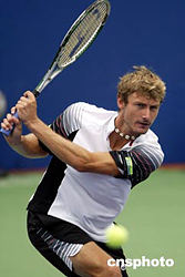 九月十五日,中國網球公開賽ATP男子單打比賽在北京網球中心的中央球場進行,在兩次因雨暫停之后,西班牙選手費雷羅(見圖)最終以二比零戰勝美國選手基梅爾托博。中新社記者:盛佳鵬
