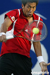 九月十八日,在北京網球中心中央球場進行的ATP男子單打半決賽中,泰國網球名將斯里查潘以零比二不敵俄羅斯選手尤茲尼,無緣決賽。中新社記者:盛佳鵬