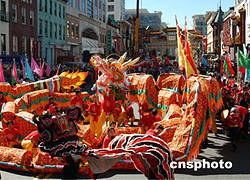 二零零四年華盛頓中國文化節九月十九日在華盛頓唐人街舉行。醒獅起舞,巨龍翻滾,營造了熱鬧的中國節日氣氛。作者:余東暉