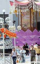香港新景點星光大道近日裝飾一新,大型彩燈及花燈高掛準備迎接中秋佳節。圖為游客在充滿節日氣氛的環境下觀光游覽。作者:洪少葵
