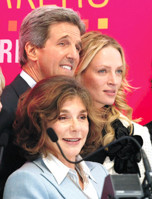 圖:烏瑪·瑟曼與美總統候選人克里夫婦同出席頒獎禮