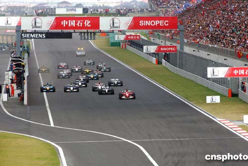 九月二十六日,法拉利車隊(duì)的巴里切羅以一小時(shí)二十九分十二秒四二零的成績在上海奪得F1歷史上首個(gè)中國大獎賽的冠軍。作者:潘索菲