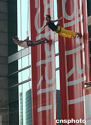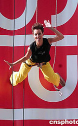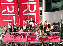 15名模特在樓高6層的外墻舞臺(tái)上表演,優(yōu)雅的動(dòng)作淋漓盡致地把設(shè)計(jì)師的作品表演出來(lái)。