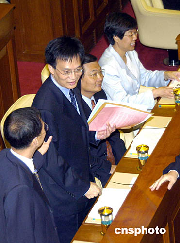 備受爭議、外號“長毛”的議員梁國雄,身穿黑色短袖圓領T恤,先高呼口號,然后再按原定的誓詞宣誓。但他并未在誓詞上簽署便返回座位。有議員對此提出異議,立法會秘書長馮載祥表示,法律沒有規定議員宣誓后要在誓詞上簽名,議員簽名只是一貫的做法。