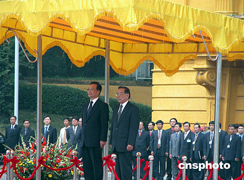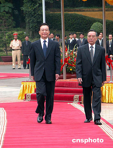 圖:越南總理舉行儀式歡迎中國總理溫家寶