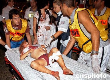 一名在爆炸中受傷的以色列女孩被救援人員送往醫(yī)院