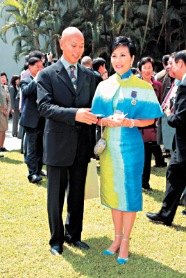獲頒星章后,“阿姐”在家英陪同下,步進禮賓府的草地參與酒會,期間家英充當(dāng)攝影師,不停為“阿姐”與其它嘉賓拍照留念。雖然記者起哄要他親“阿姐”以示道賀,但卻食了“阿姐”的檸檬。