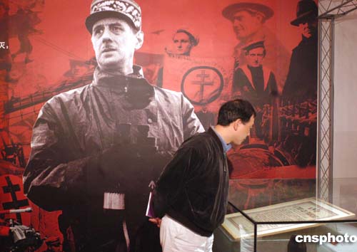 10月10日下午,由中國人民外交學(xué)會、中國對外文化交流協(xié)會和法國戴高樂基金會聯(lián)合主辦的《叱吒風(fēng)云的偉人——戴高樂生平展》,在北京中華世紀壇開幕。這一活動是法蘭西共和國總統(tǒng)希拉克對中國進行國事訪問之際,正式拉開帷幕的“中法文化年”——法國文化年的活動之一。展覽主要通過圖片、視聽手段復(fù)原戴高樂生前的生活和工作場景,展示戴高樂將軍的一生和他為法國所做的貢獻。作者:鄒憲