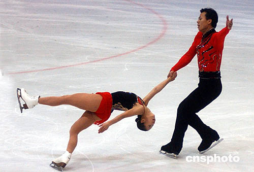 十月十三日,中國花樣滑冰隊在北京首都體育館進行隊內測試,備戰即將舉行的世界花樣滑冰大獎賽美國站比賽。圖為中國花樣滑名將申雪、趙宏博演繹自由滑新編曲目《宋氏王朝》。中新社記者:武仲林