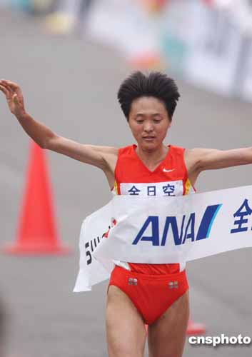十月十七日,中國田徑名將孫英杰以2小時(shí)24分13秒的成績奪得北京國際馬拉松女子組冠軍。作者:武仲林