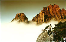 黃山位于安徽南部黃山市境內,隨著徽杭高速公路的貫通,坐車從浙江杭州到黃山僅需2小時。黃山總面積1200平方公里,其中風景名勝區為154平方公里,1985年以唯一的山岳型風景區入選中國十大風景名勝,被世界教科文組織確認為世界自然和文化雙遺產,有“黃山歸來不看岳”的美稱。黃山景勝,以峰為體,峰林似海,有天都峰、蓮花峰、光明頂、始信峰、玉屏峰等,其中蓮花峰最高,海拔1864米。黃山景致優美,最有名的當屬奇松、I怪石、云海、溫泉。黃山群峰兀立,深壑縱橫,。還形成了眾多的溪瀑峽谷景觀。著名的有九龍瀑、人字瀑、百丈泉、翡翠谷(又名情人谷)。黃山現有云白(云谷寺-白鵝嶺)、松谷(松谷庵-松林峰)、慈玉(慈光閣-玉屏樓)三條觀光索道,供游人上下山選用。