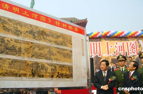圖:《清明上河圖》特種郵票在河南開封首發(fā)