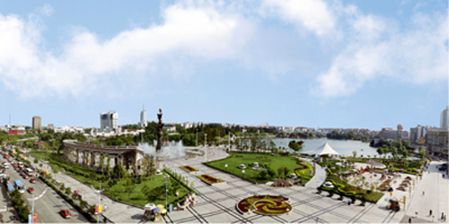 廣場整體上為北高南低、西高東低,強調其向水性和向陽性。人們既可以在這里聽音樂會,又可以在林間小憩、水中嬉戲,還可以在地下商場購物,了解蕪湖的人文歷史、廣場與大、小鏡湖、中山路步行街一起,組成了一個集觀光、休閑、購物、娛樂于一體的城市中心旅游區。
