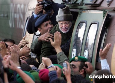 阿拉法特29日乘坐約旦軍用直升機(jī)飛往約旦首都安曼,并在那里乘法國派來的專機(jī)飛赴巴黎。