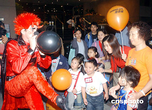 巨人嘩鬼在游客絡繹不絕的星光大道與游客嬉戲,吸引途人好奇目光。