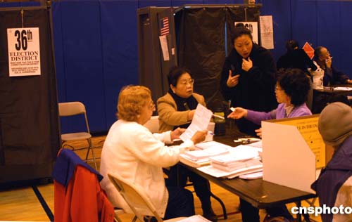 紐約州的選舉站都有懂華語、韓語、西班牙語的工作人員為少數族裔選民提供幫助。作者:趙海燕
