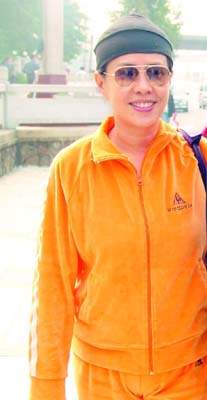2004年11月3日,發(fā)嫂為老公來廣州打官司,一身寬松的運(yùn)動裝,已遮掩不住明顯隆起、據(jù)說是練氣功而出現(xiàn)的肚子。(記者葉毅)