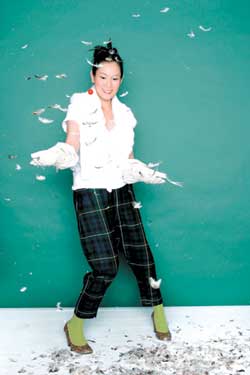 從首體主體舞臺延伸出的T型延伸臺長達(dá)8米,奶茶可以在其間自由與茶迷們親密溝通。上海演唱會上,雖然也有吊鋼絲,但由于舞臺很小,和觀眾太近,只能上下活動,效果自然不很壯觀。這次不同,舞臺前后各有支柱,奶茶的鋼絲可以上下前后移動,加上舞臺前沿還有很多鏤空,不時有風(fēng)從那里吹過來,可以想象屆時的壯觀場景。
