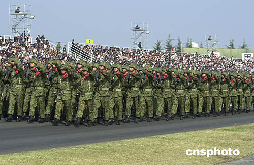 日本陸海空自衛隊十一月七日在東京附近的基地聯合舉行其成立五十周年閱兵式。作者:王健
